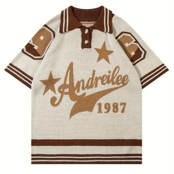 Polo en tricot décontracté à manches courtes pour hommes, hauts en tricot amples, pulls en tricot de style hip-hop de rue