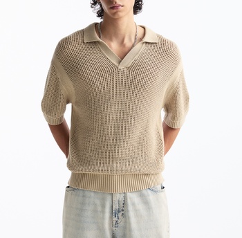 T-shirt en tricot décontracté à col en V et à manches courtes, polo en tricot ouvert à la mode personnalisée, hauts en tricot pour hommes